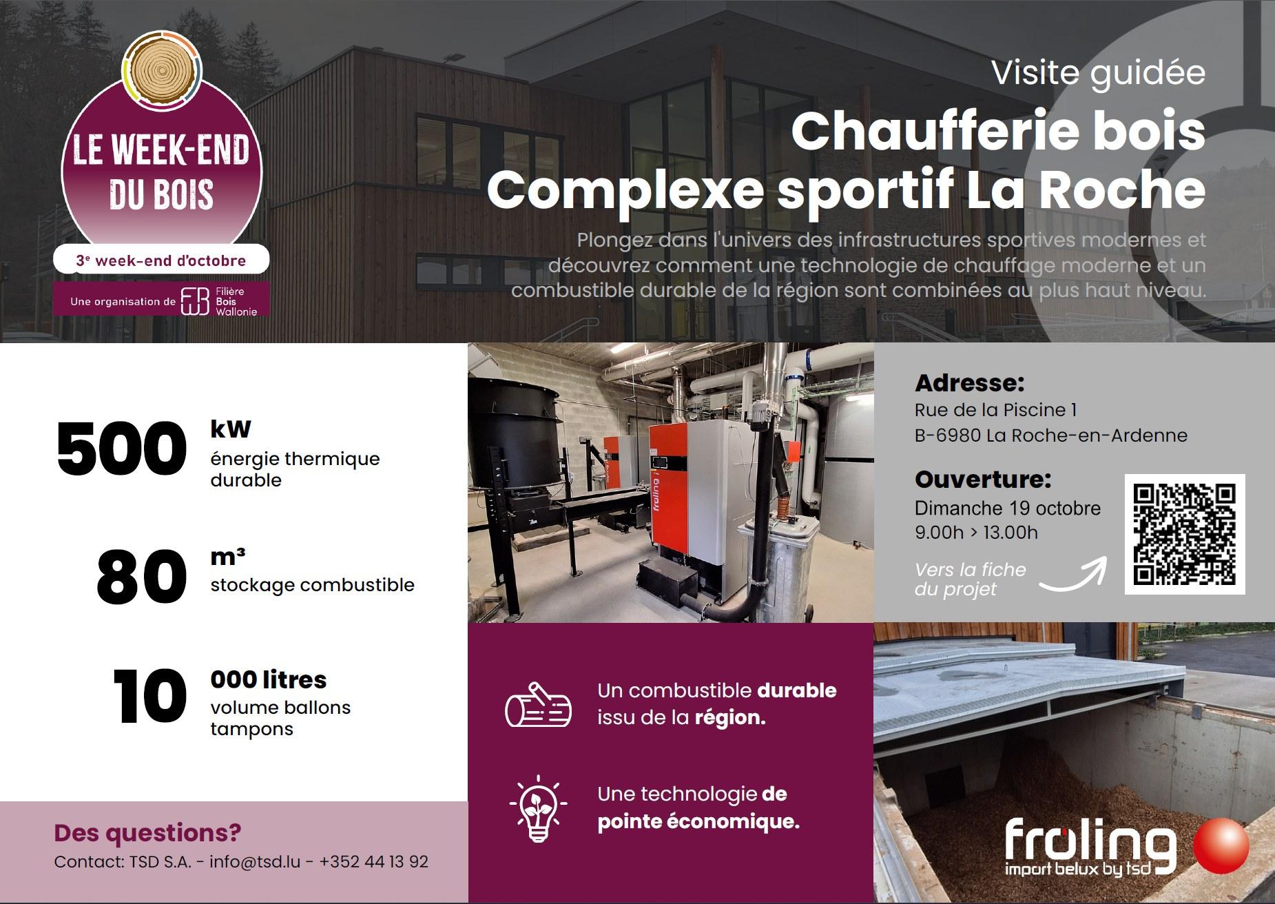 Dans la cadre du Week-End du Bois, événement organisé par Filière Bois Wallonie, découvrez la chaufferie bois du Complexe Sportif La Roche-en-Ardenne !